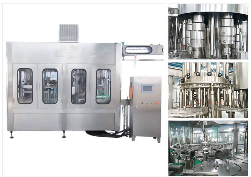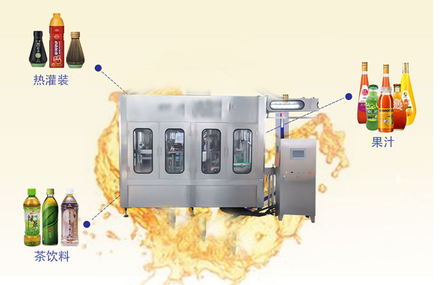 ? ? ? ?果汁灌裝機(jī)適用于果汁、茶飲料、功能飲料及果味奶飲料的灌裝。在溫度控制器的幫助下,該機(jī)器能夠進(jìn)行80-95度高溫?zé)峁嘌b。本設(shè)備采用瓶頸懸掛技術(shù),適用于各種瓶型,更換瓶型只需調(diào)節(jié)傳送鏈的高度即可,方便快捷。全機(jī)PLC控制變頻調(diào)速,自動化程度高,自動控制進(jìn)液,液位控制準(zhǔn)確,無滴漏。與物料接觸部分均為食品級304優(yōu)質(zhì)不銹鋼。是飲料廠家的優(yōu)選產(chǎn)品。